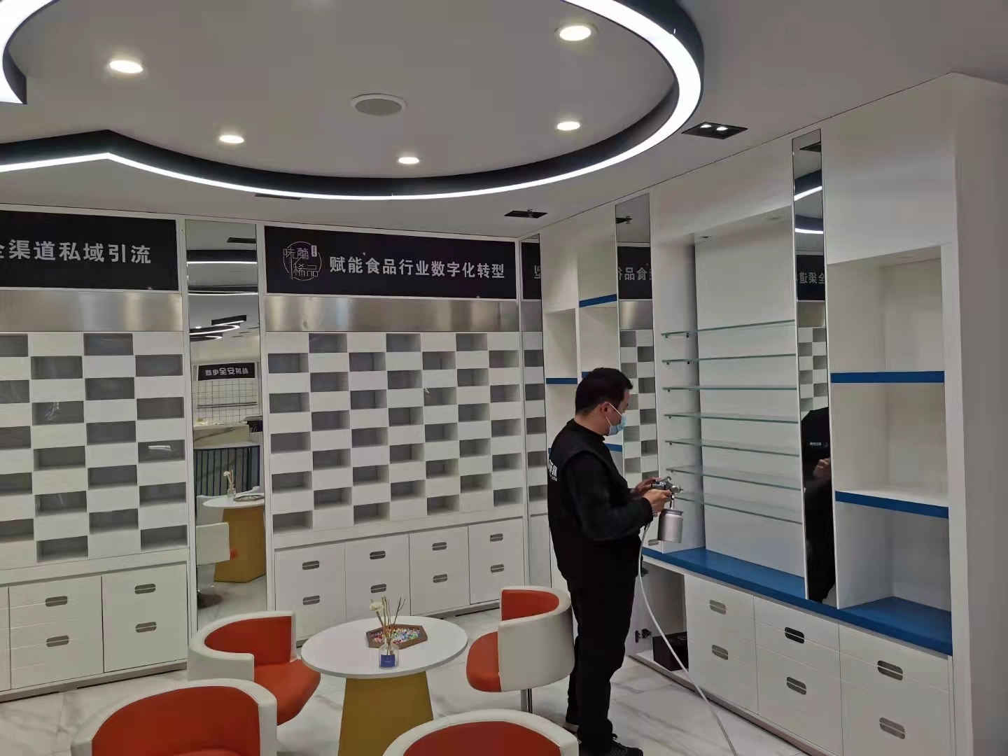 工作人员精心施工确保将室内有害气体降低到国家标准安全限值以下。