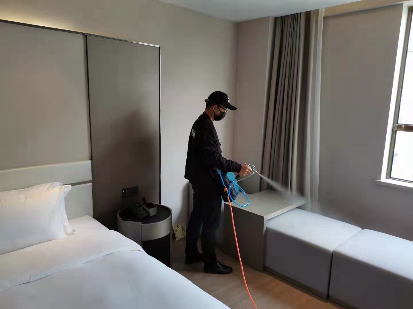 兰山区某酒店负责人通过朋友介绍联系到我们,说顾客反映入住他们新装修的酒店后感觉有些“辣眼睛”,怀疑甲醛超标,需要做个专业甲醛治理。我们东展临沂除甲醛尽快安排了治理师傅了解现场情况。经过专业检测,大部分房间甲醛轻度或者中度超标。部分通风比较差的房间甚至严重甲醛超标。因酒店已经开业,我们东展临沂除甲醛公司拟定治理方案,把治理分为三个阶段,经过四天的治理,所有房间“辣眼睛”现象消失,经过第三方检测,所有房间甲醛符合国家标准。