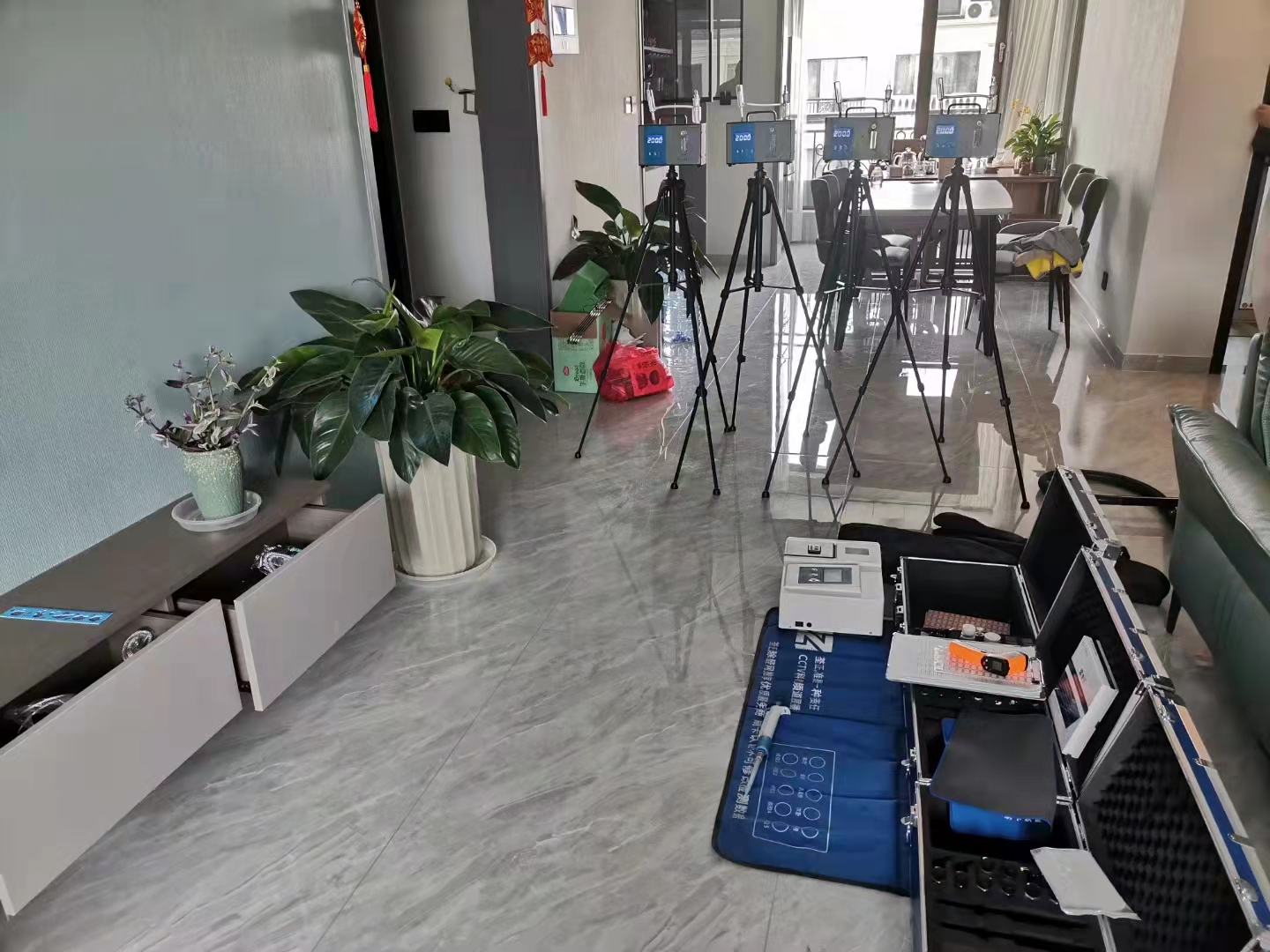 客户三室一厅新房, 装修放了很长时间了,本来就计划好了时间搬家的,他老婆不放心,所以找我们做甲醛检测,检测结果有的房间轻微超标,有的房间较严重,接下来看客户自己打算吧。如果不着急入住可以先再放几个月到时候再检测看看结果,